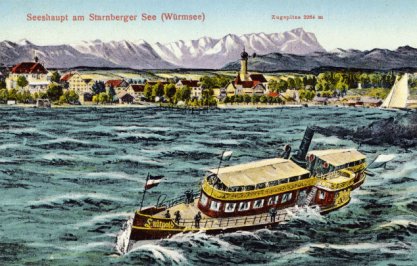 mit dem Dampfschiff in Seeshaupt ankommt, – die Dampfschiffe